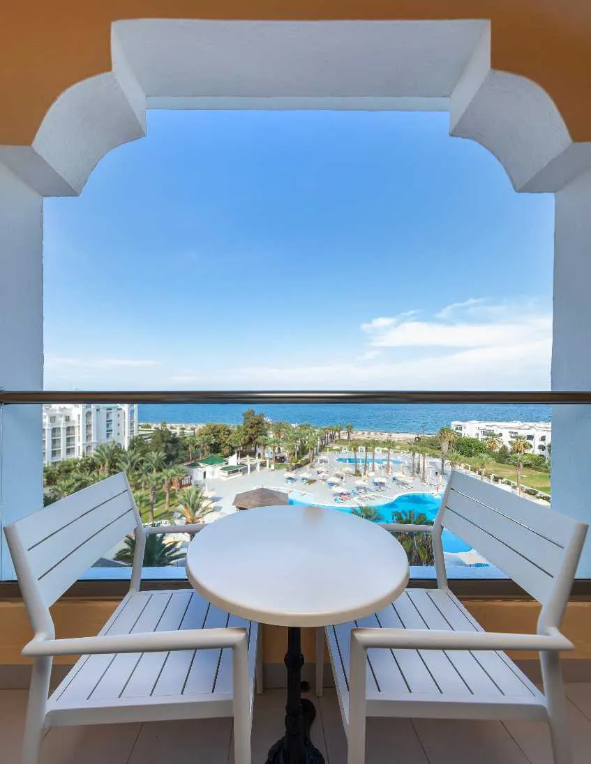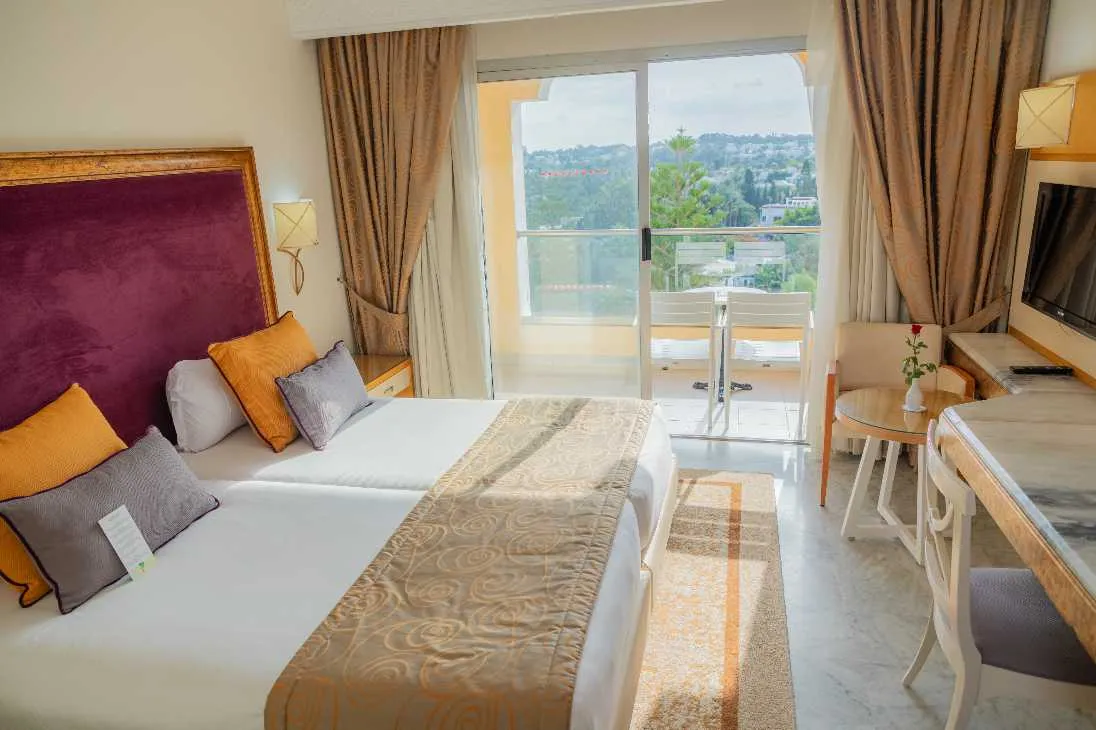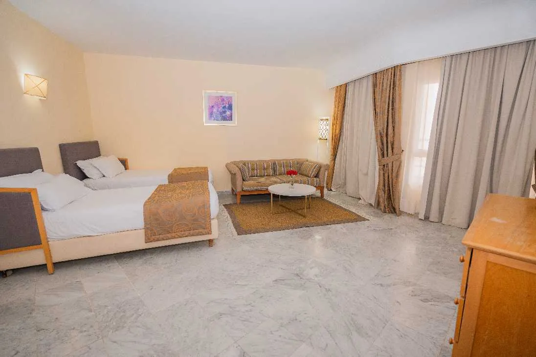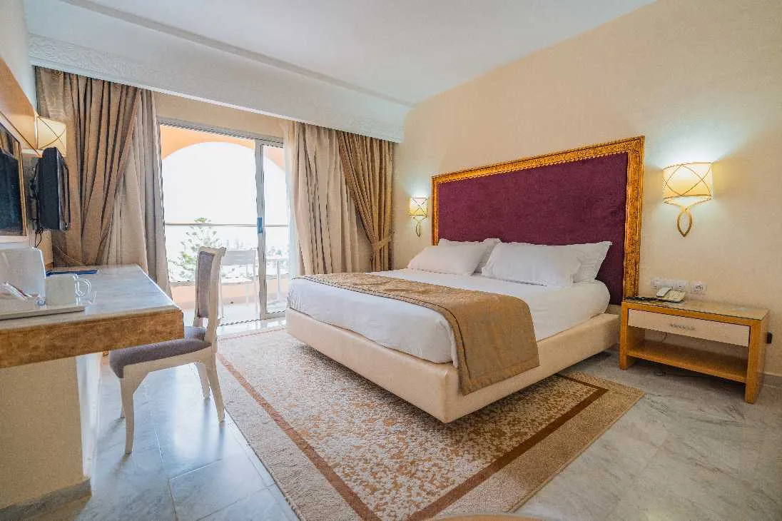 L'hôtel Marhaba Palace dispose de 322 chambres, incluant des chambres Single et Double avec vue sur mer ou jardin, ainsi que des suites confortables et une suite présidentielle.