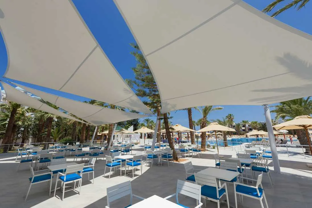 Profitez d'une variété de restaurants et bars à l'hôtel Marhaba Palace, y compris un restaurant buffet avec terrasse, un restaurant à la carte proposant une cuisine tunisienne et internationale, un café maure, un bar américain et un bar salon avec terrasse.