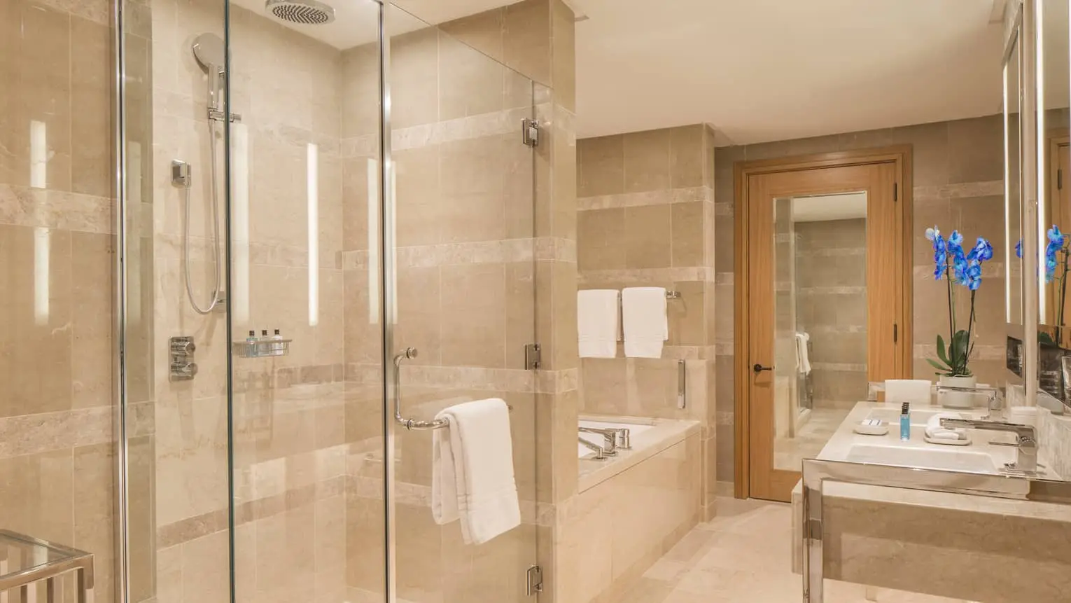 • Salle de bain luxueuse : chaque chambre dispose d’une salle de bain privée avec baignoire profonde, douche séparée et des articles de toilette gratuits pour un confort optimal.