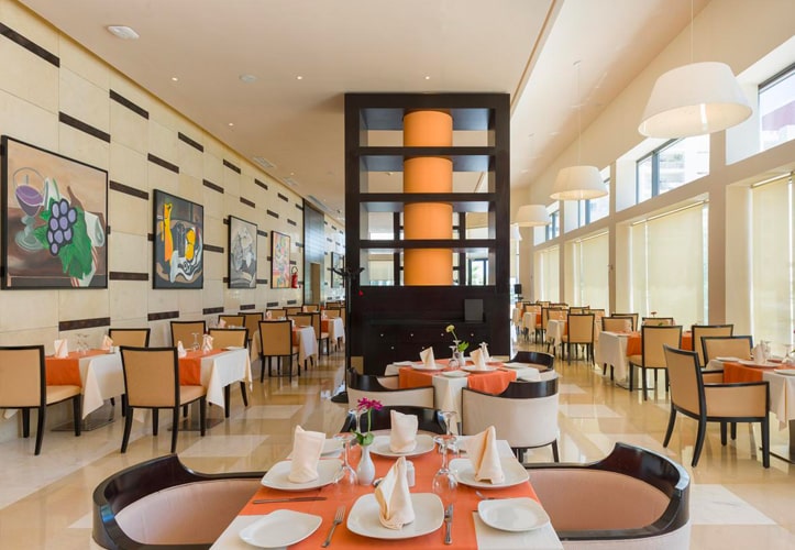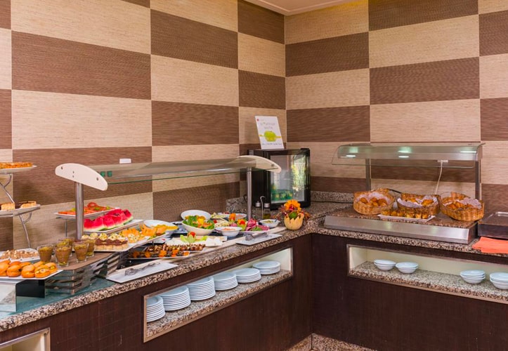 Pour vos repas, le Corail Suites Hôtel dispose d’un restaurant pouvant accueillir jusqu’à 90 personnes, proposant un menu à la carte international avec une spécialité en cuisine espagnole. Un bar est disponible pour des boissons avec ou sans alcool. Un salon de café est ouvert tôt le matin, et des barbecues sont également organisés.